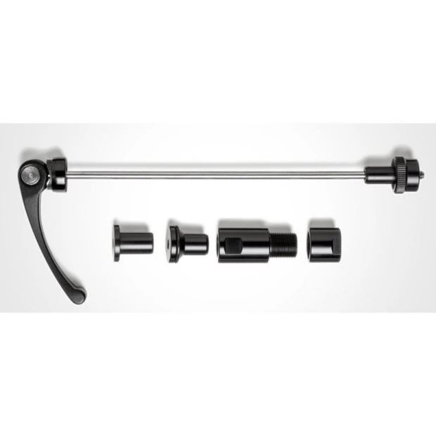 L’axe de blocage rapide Tacx T2835 a été conçu pour installer un vélo de route avec freins à disque ou un VTT à axe flottant sur un home trainer Tacx à entraînement direct. Il est livré avec un kit d’adaptation pour que vous puissiez sélectionner l’accessoire adapté à votre vélo. Cet axe convient uniquement aux trainers Tacx à entraînement direct (Neo Smart, Flux 2 Smart, Flux S Smart…).